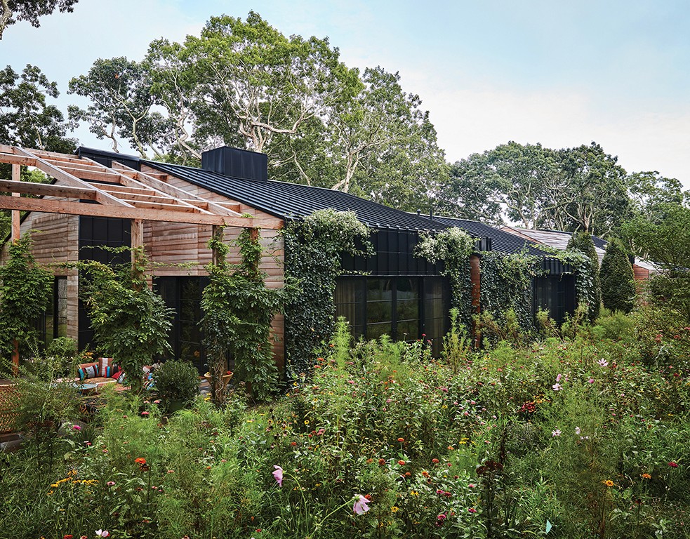 In a narrow lot adjacent to her long island home, interior designer Muriel Brandolini fashioned an enfilade of guest rooms—and let nature do the rest.